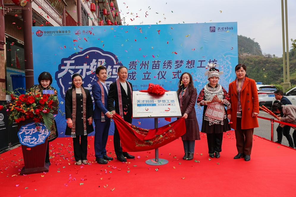 图:燕之屋“天才妈妈”贵州苗绣梦想工坊揭牌仪式