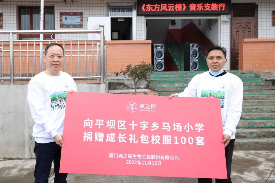 这已经不是燕之屋与《东方风云榜》第一次携手与爱同行。去年6月,燕之屋携手第28届《东方风云榜》前往甘肃省临夏回族自治州广河县官坊小学,唱响山区孩童音乐梦想,并向官坊小学捐赠了校服、校园多媒体设备、学生书包等物资。除了现场支教,近年来,《东方风云榜》音乐支教行也大力推广远程音乐网课计划,定期邀请具备音乐专长的志愿者通过网课形式进行互动教学,为孩子们的音乐梦想助力。