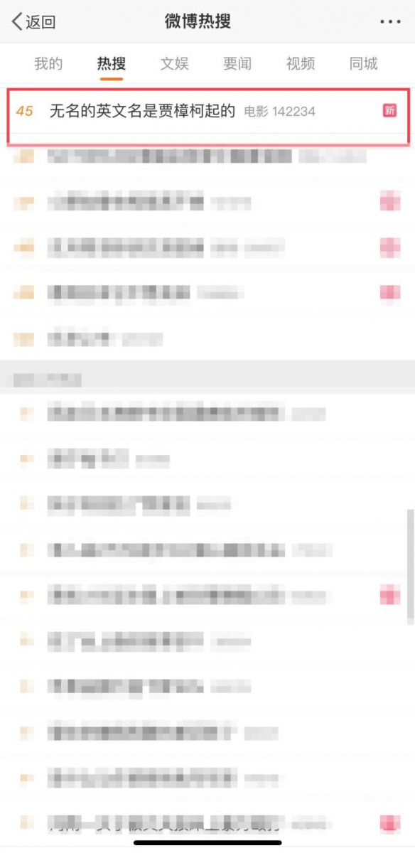 图:话题#无名的英文名是贾樟柯起的#登上微博热搜